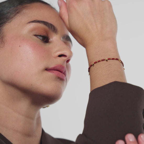 The semi-precious bracelet that's slim, but mighty. This Semi-Precious Beaded Bracelet will become a go-to in your daily arm stack, featuring golden charms that add detail. It is plated with 18K gold and finished with a PVD coating keeping it waterproof and highly tarnish-resistant.