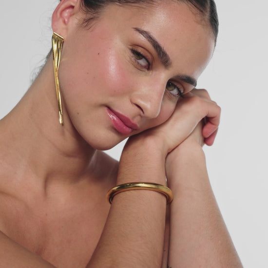 The simple cuff that's far from plain. This waterproof Chunky Open Cuff makes a minimalist starting point to any arm stack. With an open design and high-shine finish, team yours with more detailed bracelets for contrast. Finished with 18K gold plating and PVD coating to keep it tarnish-resistant for longer.