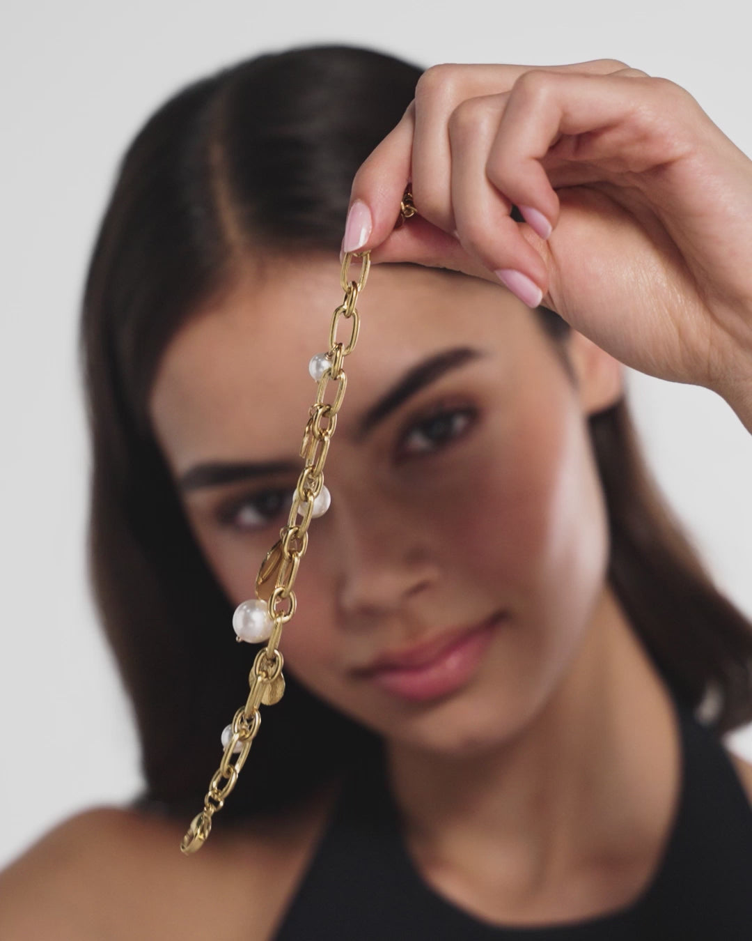 Charm bracelets are back, and this one's waterproof. Our Chunky Disc & Pearl Charm Bracelet