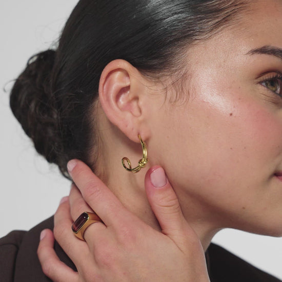Hoops with a little bit of a twist. Our Bow Stud Hoops feature a delicate knot and a doubled-up design to switch things up from your everyday earrings. Waterproof, these are also 18K gold-plated and PVD-coated to resist tarnishing with every wear.