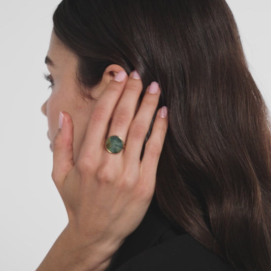 Bold, timeless and built to last. Our Circular Stone Ring is a signet-style design featuring a polished semi-precious stone — adjustable, to suit any finger. Made from stainless steel with 18K gold plating, it's waterproof and tarnish-resistant thanks to a premium PVD coating. |