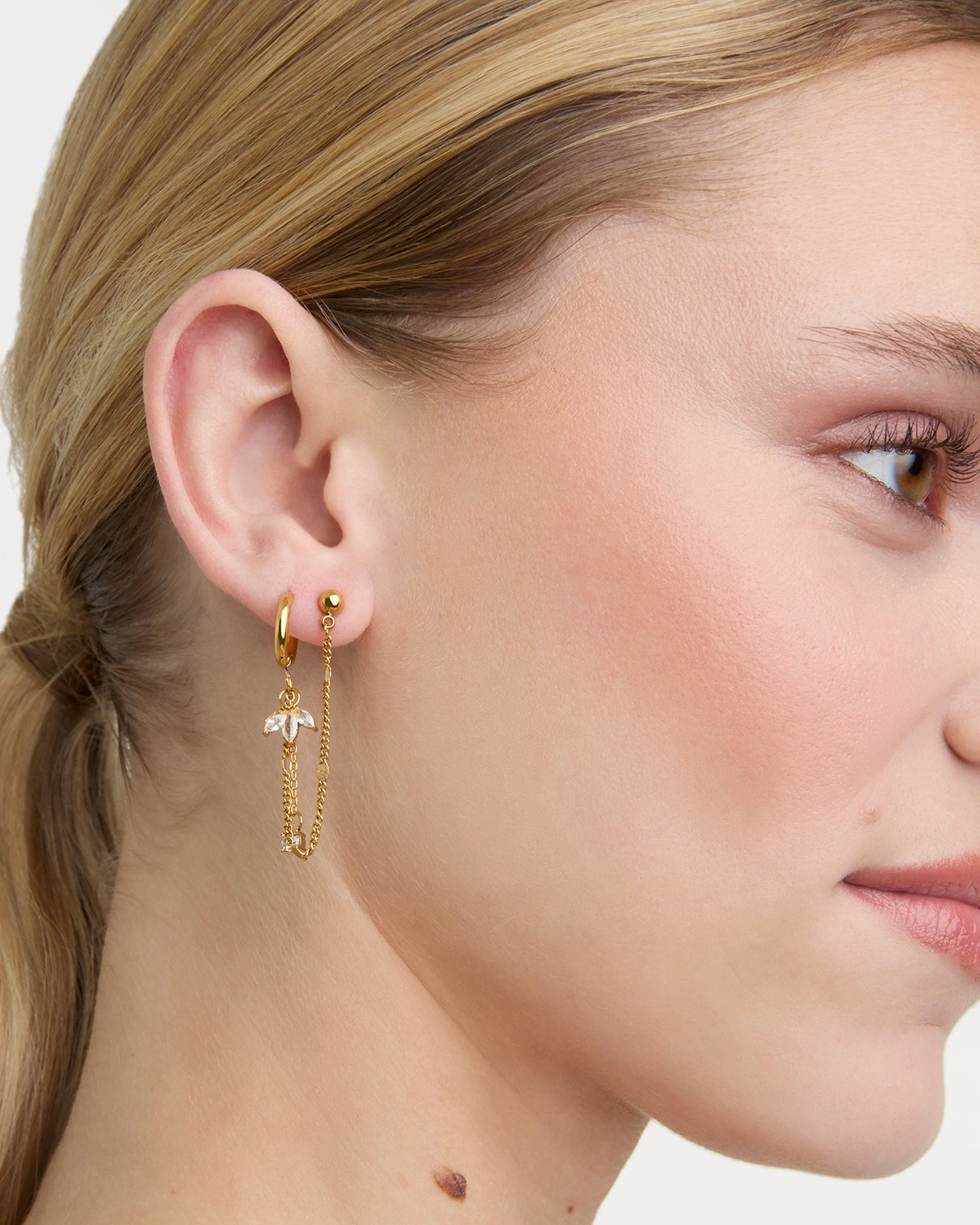 We use PVD gold plating across our Waterproof Collection gold pieces. The process of adding a layer of PVD gold coating to stainless steel helps to keep it tarnish-resistant, shiny and waterproof (of course). Clean gently with water and carefully pat dry. While your jewellery is made to be durable and scratch-resistant, we recommend avoiding harsh chemicals to keep it looking its best.