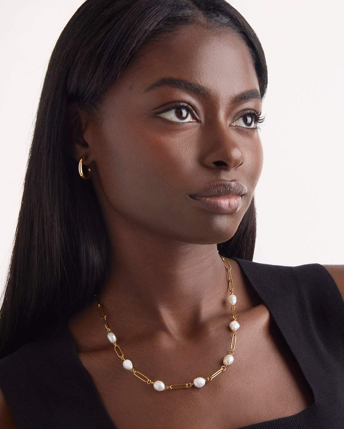 This waterproof pearl chain necklace is your go-to for easy everyday shine.