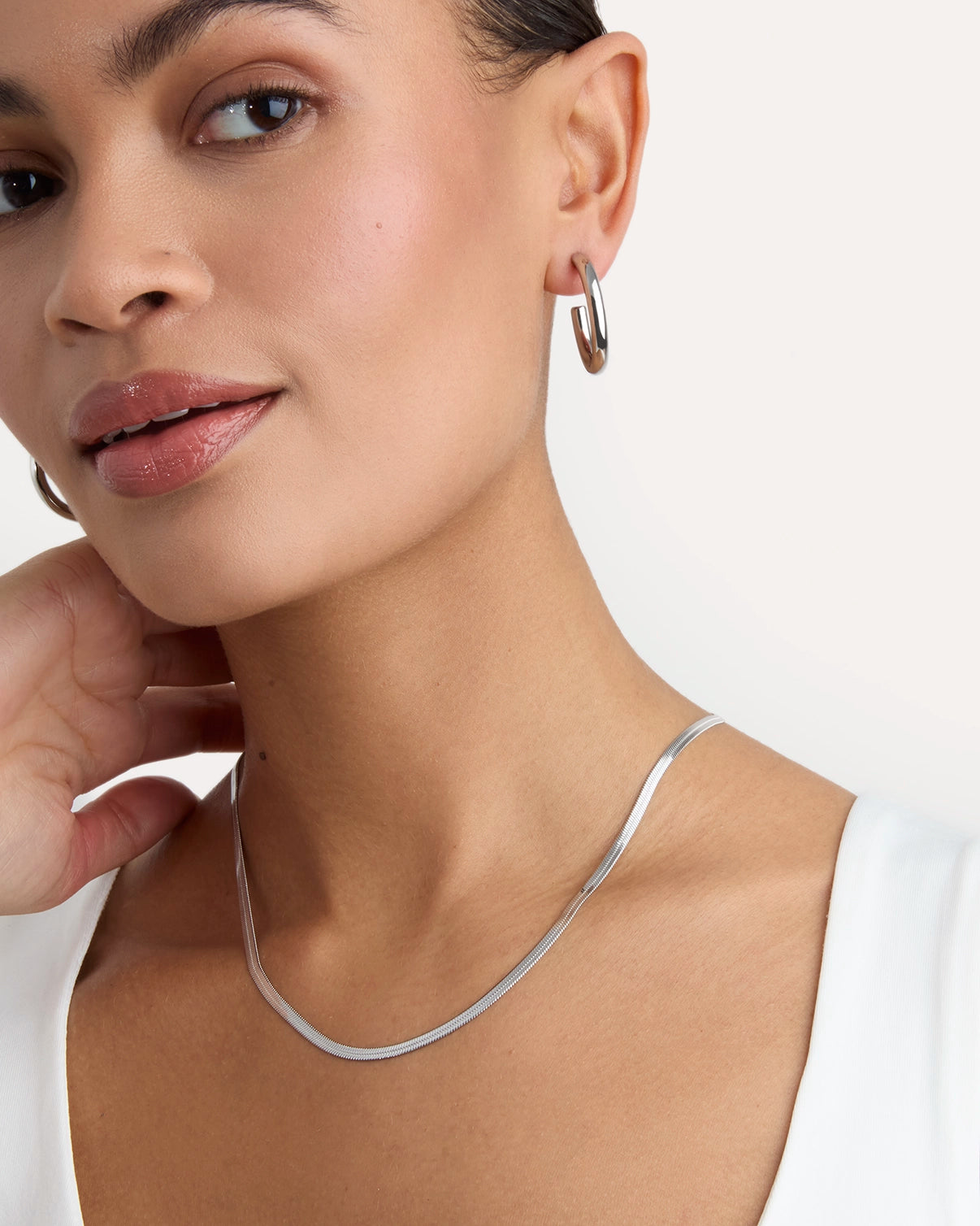 This waterproof silver chain necklace gives instant, sleek everyday shine.