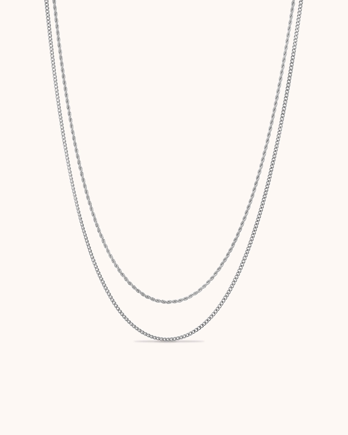 Waterproof Double Layered Chain Link Necklace in Silver