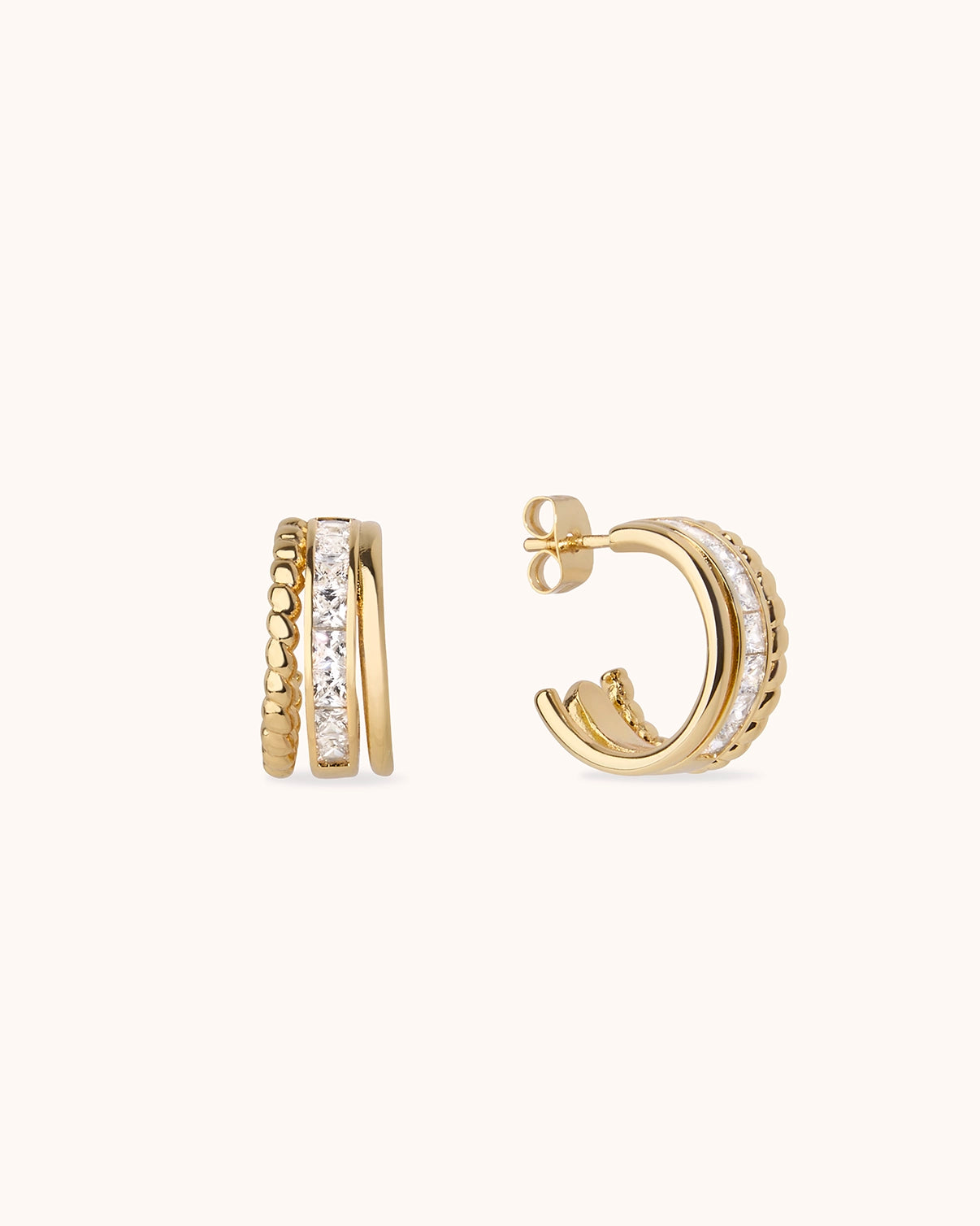 Triple Row Cubic Zirconia Stud Hoops in Gold