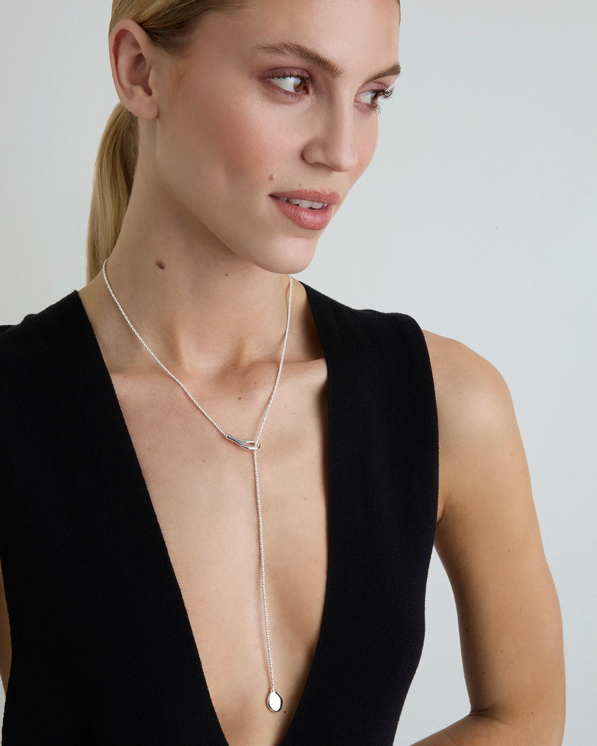 Lariat Loop Necklace in Silver