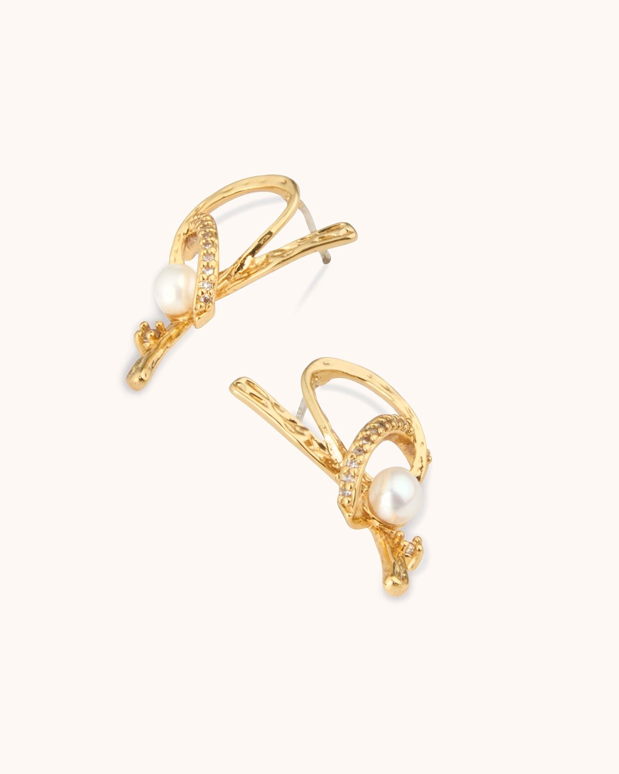 Cubiz Zirconia and Pearl Knot Studs in Gold