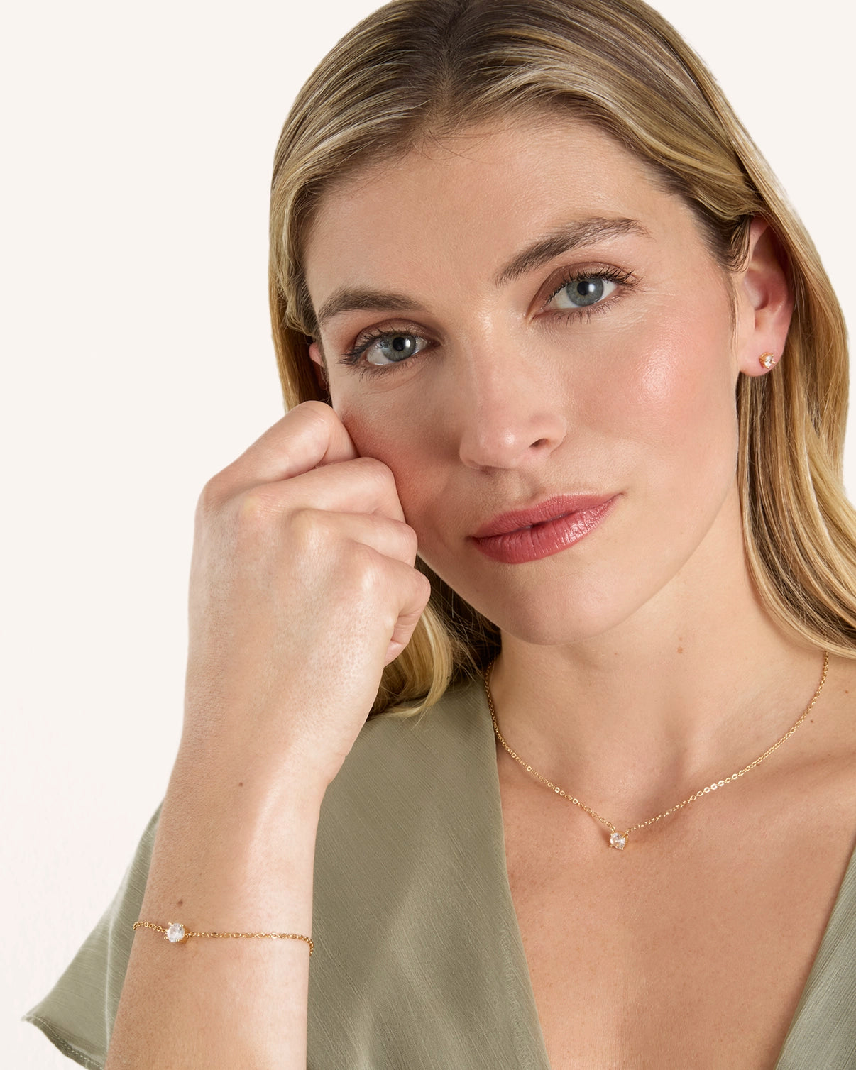 Gift Set: Solitaire Necklace, Bracelet & Earrings in Gold