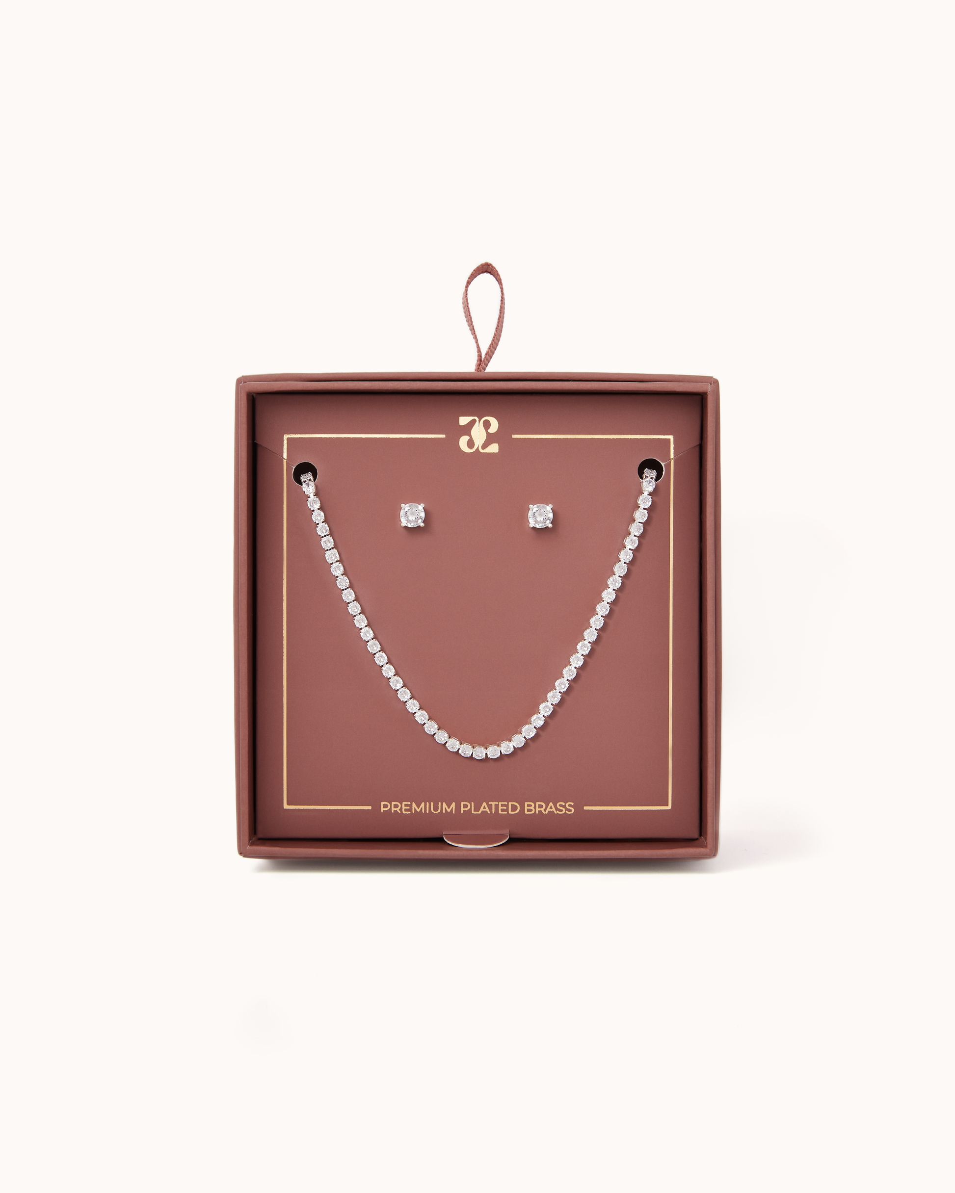 Gift Set: Tennis Necklace & Studs Set in Silver